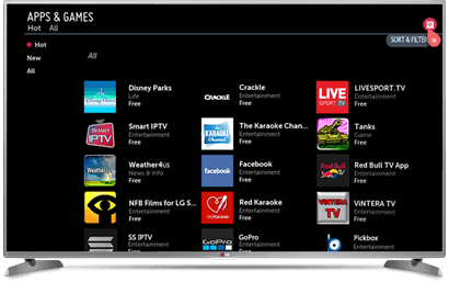 On the remote control, press the SMART TV button, then select the APPS icon.